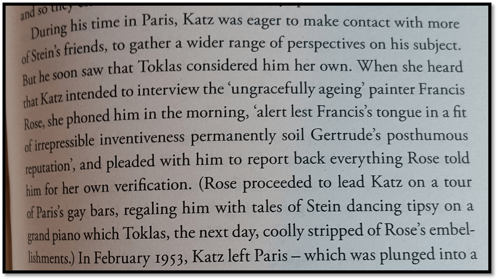 Francesca Wade (2025: 307) Gertrude Stein: An Afterlife London, Faber.