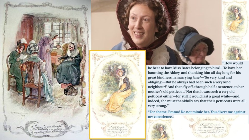 Yet her novels can use a sledgehammer with Sir Walter precisely because it is not the precarity of the lives of him, or those like him which matter to Austen, but women whose lives are structured as precarious – and the novels abound with examples of those for whom life has already become hard to sustain for one reason or another, such as Miss Bates – and potentially Jane Fairfax – in Emma, women whose lives are vulnerable if without the means or qualities of being connectable in marriage.