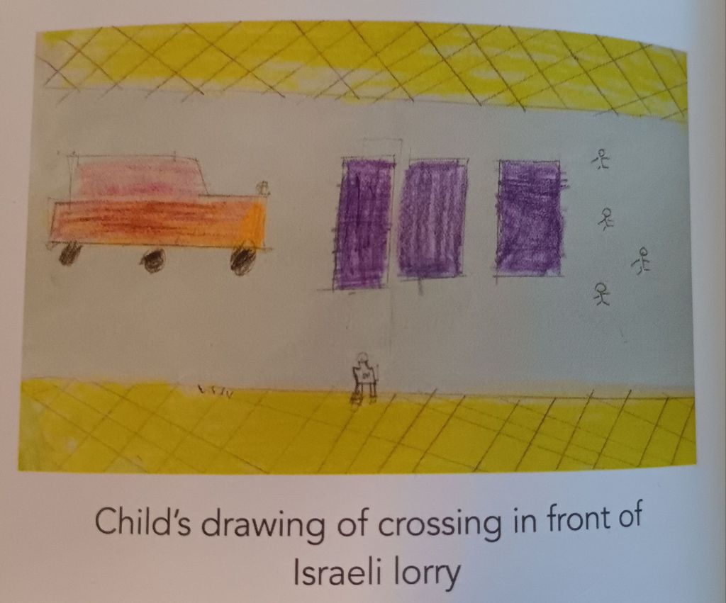 Of course to Marjorie Gann the word ‘occupation’ is already a ‘lie’, though her evidence for lying is really that for ‘inaccurate’ definition – the Israels never intended to take Arab areas into their control, she argues, but were forced to by attack from hostile Arab regimes in the Six-Day War of 1967. On the basis of using a poor definition, Gann dismisses not only the authors but all of the young people whose family experience – of legalised (by the laws of the Israeli State) imposition of restrictions on movement of land development or access to civil law redress, relatives imprisoned or forcibly evicted, of arbitrary powers of search and arrest, the role of life-disrupting checkpoints at barriers in walls or tunnels – leads them to use this term, without prompting by the authors, too. Nour, a boy of 14 talks if his family life as ‘not living. We survive., and Samia, a girl of 12 describes occupation as an effective prison: ‘The occupation. It fills our lives. We cannot escape it’. [4] The children of Qattana have to go to school through a small tunnel they call a pipe, for it surges in floods, because their land was sequestered to build a separation wall in order to guide settlers subject neither to Israeli or Palestinian Authority (PA) law but autonomous and yet guarded heavily by the IDF. Times for schooling have to be changed to avoid the children getting harrassed by settler children: