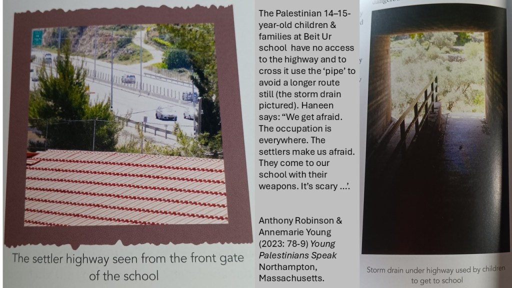 [1] Anthony Robinson & Annemarie Young (2023: 73-5) Young Palestinians Speak Northampton, Massachusetts. Bold & italics are my emphases.