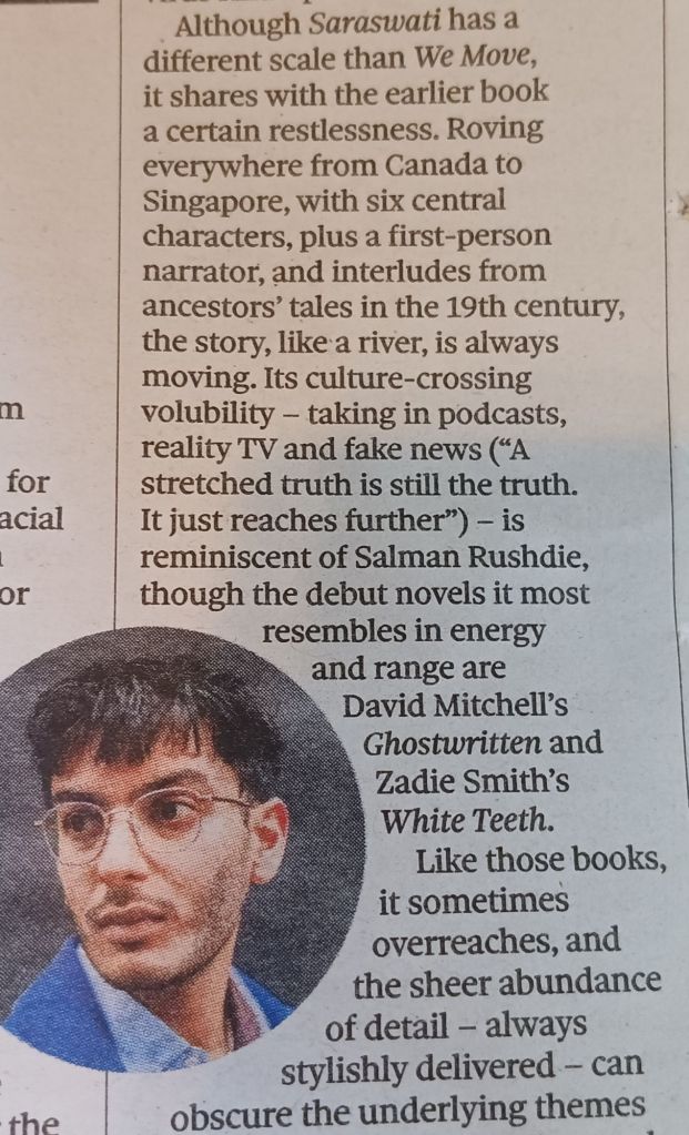 Very rarely have I found a review so helpful. It was helpful because it diagnosed my problem with the novel. I recognised my discomfort as a kind of resistance to the novel’s demands that I keep my nervous response to the novel on the edge of discomfort, and sometimes way over the edge – not only in its multiplicity of foci but its ‘certain restlessness’ of feel. The analogies with early David Mitchell – referencing the latter’s debut – and Salman Rushdie, whose latest books now continually provoke me to incompletion (Quichotte for one) I can’t mend but whose Midnight’s Children (1981), Shame (1983), The Moor’s Last Sigh (1995), The Ground Beneath Her Feet (1999) and Shalimar the Clown (2005) are as near to a new kind of literary perfection, that the term ‘magical realism’ barely covers, as you might find. With Zadie Smith I see no analogy (hers is a perfection in a classic mode).