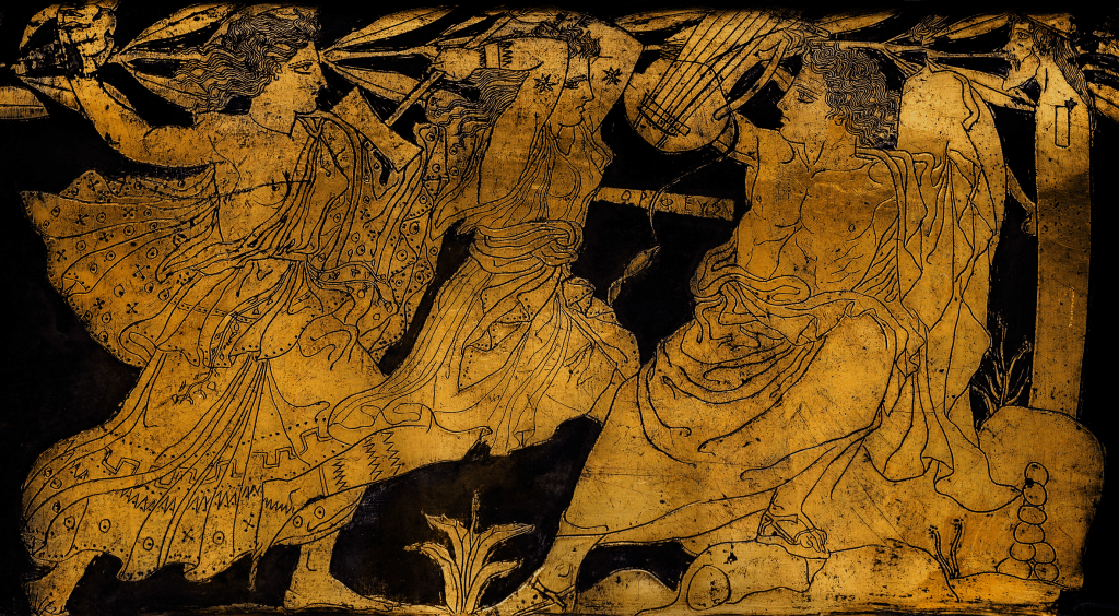 The Death of Orpheus, detail from a silver kantharos, 420–410 BC, part of the Vassil Bojkov collection, Sofia, Bulgaria by Gorgonchica – (CC BY-SA 4.0: File:The Death of Orpheus.jpg) https://en.wikipedia.org/wiki/Orpheus#/media/File:The_Death_of_Orpheus.jpg