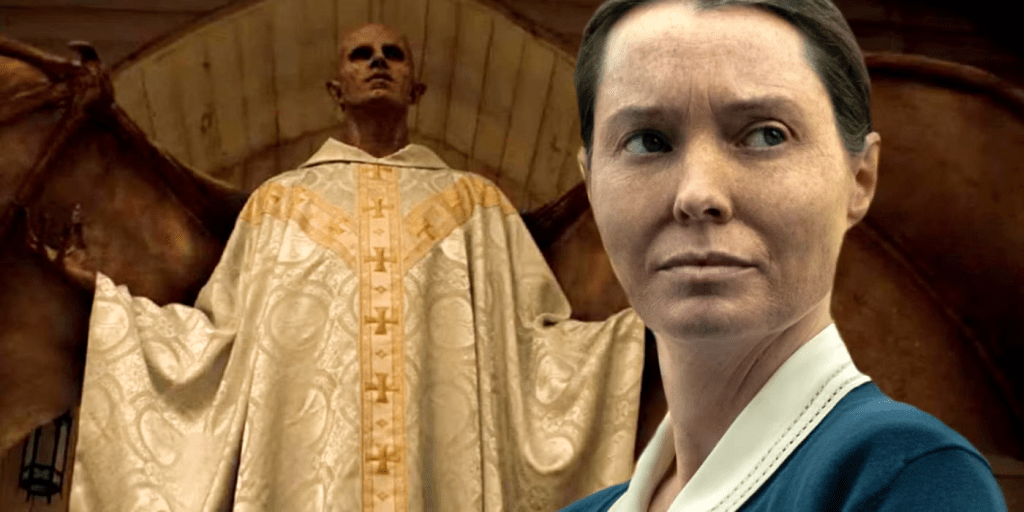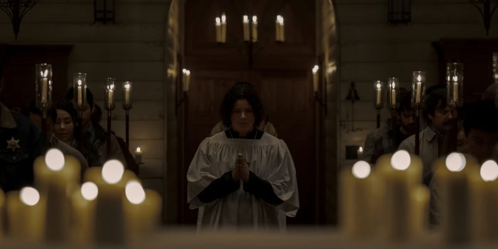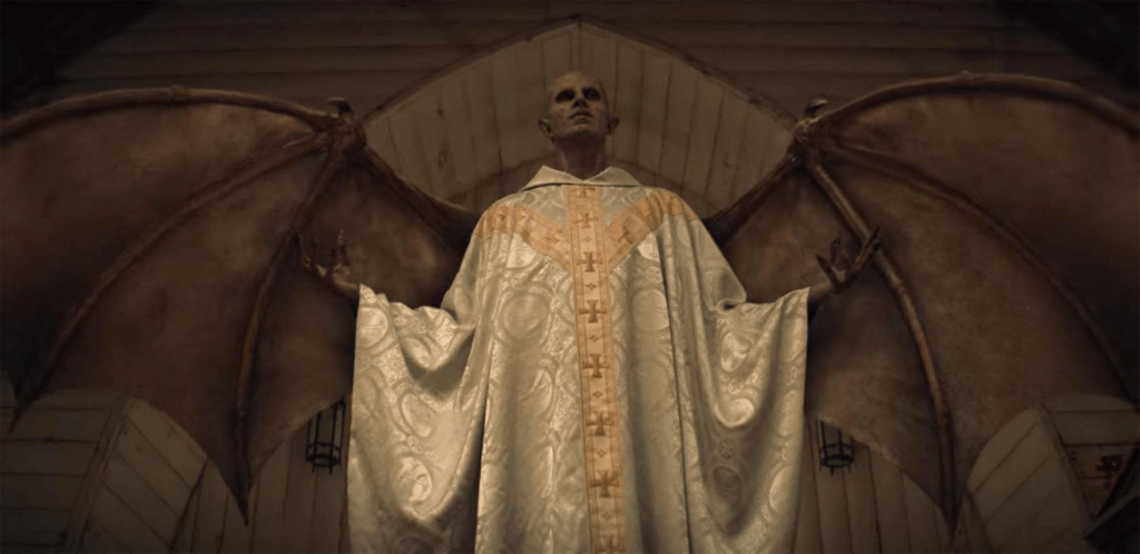 So even though the majority of the ritual of the film in each episode, is both fake and based on deceptive and hidden motives (the spread of vampire culture eventually to and through the mainland), it is presented as beautiful and positive even in the most evil of characters, like the priest’s self-centred (but replete in Biblical quotations) assistant, Beverly Keane (Igby Rigney). The most charming and sinister scene being the candlelit parade of the faithful calling out from their homes those celebrated to a ‘Final’ Midnight Mass, an Easter Mass celebrating the conversion of the body to everlasting life.