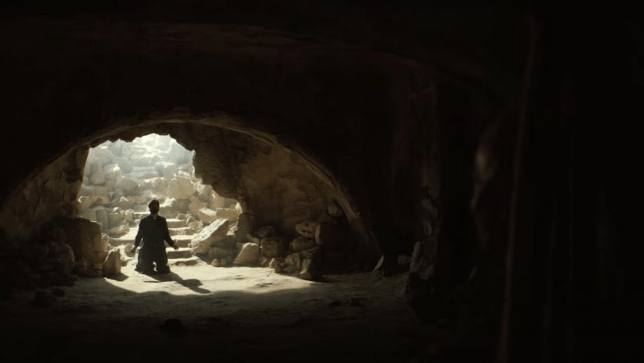 The ‘Angel’ (Quinton Boisclair) is discovered in the Dark by Father Paul on the strike of a match.