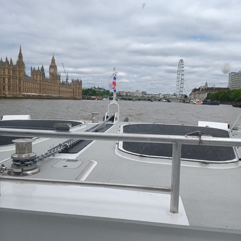 This blog concerns things I had not expected to experience thence. Having seen Burra (oh how I wish I could have spent more time) and being indifferent to Colquhoun, I inquired about the best means of getting to the Doh Suh exhibition at Tate modern. The lovely young man who sold me my catalogue also advised I take the river bus from the Millbank pier, across the road from Tate Britain to Bankside pier, outside the Globe and a brief walk to Tate Modern. This was the first of my new experience – and being the first things went wrong. I took the first boat I found at the pier only to find myself heading west to Putney. A kind conductor dropped me free at the next stop (St. George’s Wharf) and within five minutes I took the next downriver river bus. Mistakes and errors define new experiences but the thrill exceeded the stress of the errors. Sitting at the prow I loved the zig-zag travel bus path between stops on the north and south banks through the stolid thick air otherwise of that sultry hot and humid day.