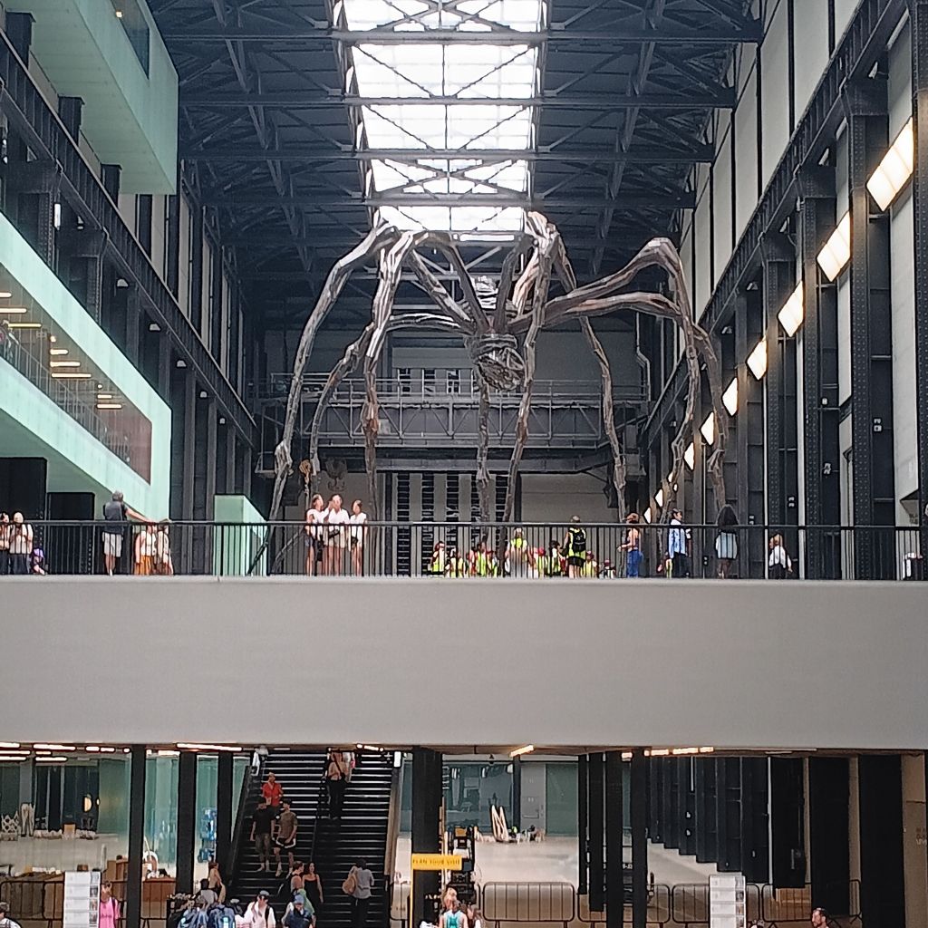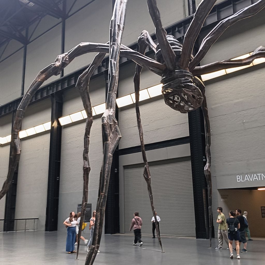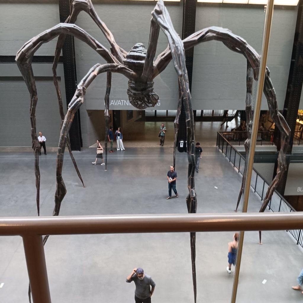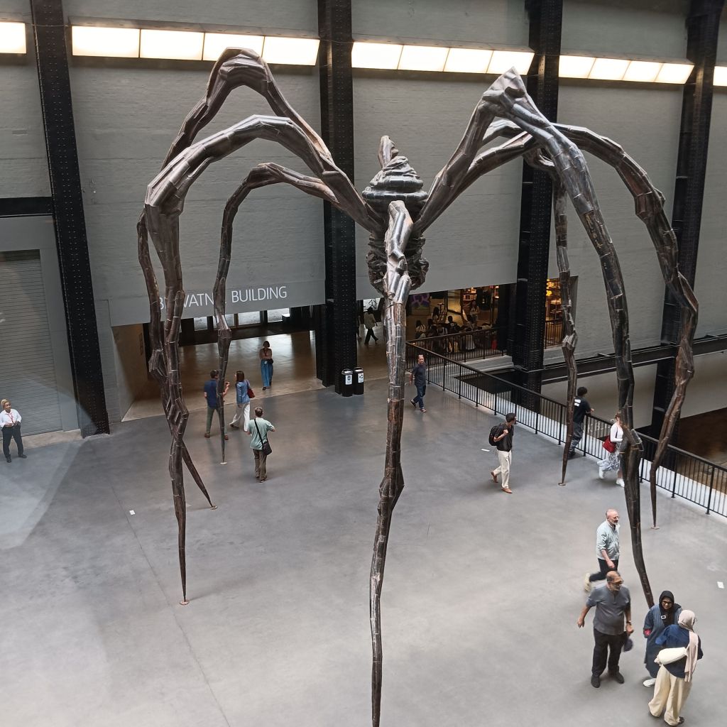 Unexpected pleasures on my London trip: I find Louise at home in the Turbine Hall inviting me to see her Maman – being the second day of my London trip (July 2 2025)