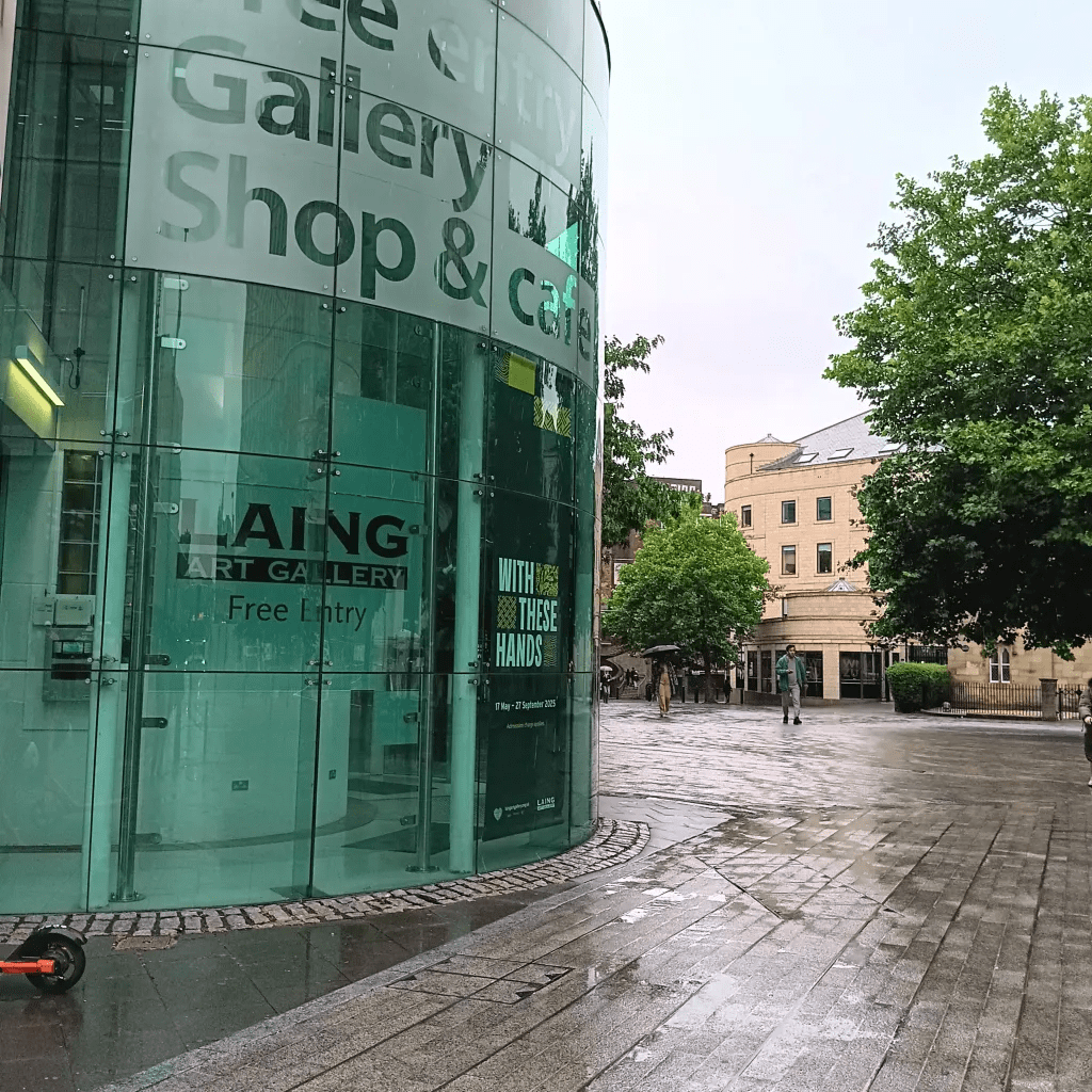 With These Hands is an exhibition currently on in the Laing Gallery in Newcastle. During the first rain for some time, I visited it yesterday whilst waiting for an event in the evening – an interview with Gurnak Johal, the author of Saraswati (2025) – I mention it in an earlier blog that is linked here. But the exhibition is worthy of more than filling time – though as I only arrived at 3.50 and, unbeknownst to me the staff begin clearing the building at 4.15 for cl9sing time, this was a brief visit – thankfully I get reduced entry to exhibitions (50%) as an Art Fund member.