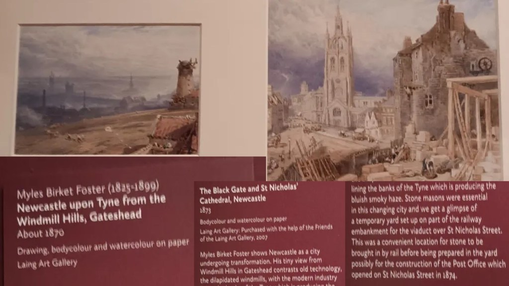 In the last example above the male hands are clueless of what they individually might do other than in waiting for their role to commence within a regular prescribed script for their work, idle when their muscle is not called upon. Not, of course that the passing of the olden days could not be celebrated in a nuanced way, as it is by Myles Birket Foster in the local Newcastle and Gateshead views below, which did not stop short at showing the filthy disadvantages of industrialisation but did not make the antique buildings of older ages or otherwise wasted land look attractive either.