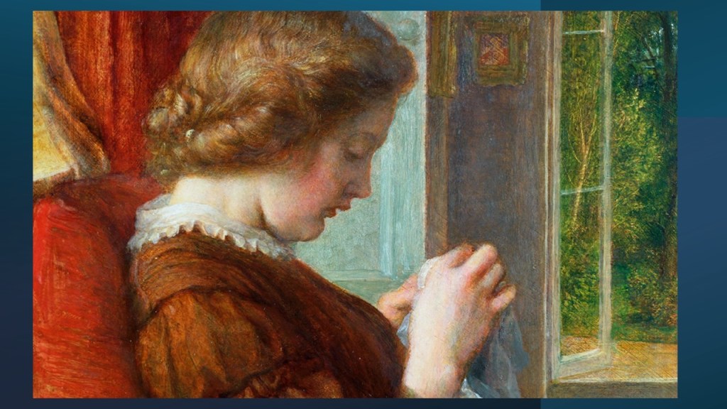 And when men paint women silently stitching the sexualisation is even more apparent when there is a larger power differential between man and woman. Consider below a painting by G.F. Watts of a maid in his household. There is something Watts wants to show as suspect in this woman sitting in full light in a window seat.
