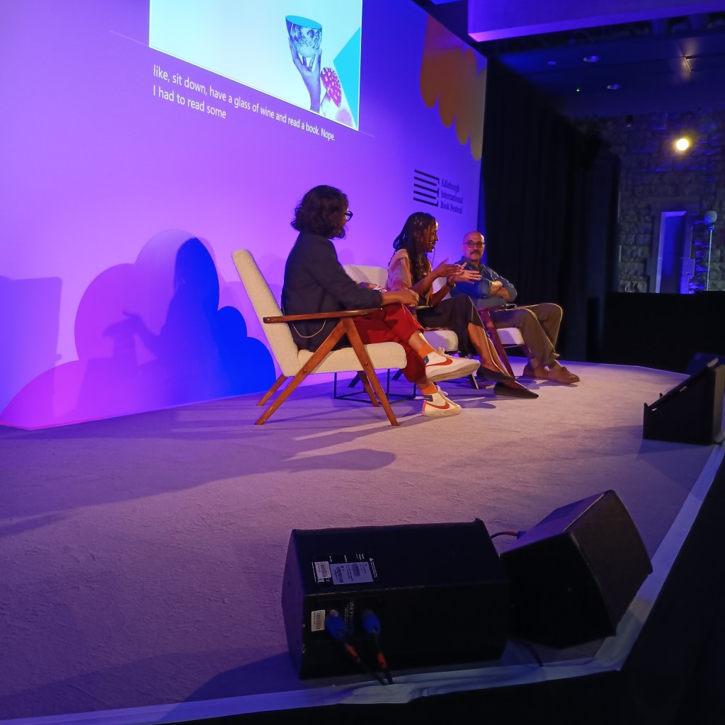 Natasha Brown, speaking with Hari Kunzru, was the last event I saw. Beautifully and sensitively chaired (by a feminist journalist) the chair also made reference to the fabulous attack on the ideological primness of Book festivals in Universality, but the attack was not of the nature of Ms. Lindsay, as her supporters call her, but on the unctuous class characteristics of Book Festival ideologies. This was the kind of event that will keep me ever going to Edinburgh. The discussion was good – though each writer might have been given their own event in truth – the similarities eked out between their books are the least interesting about either brilliant writer.