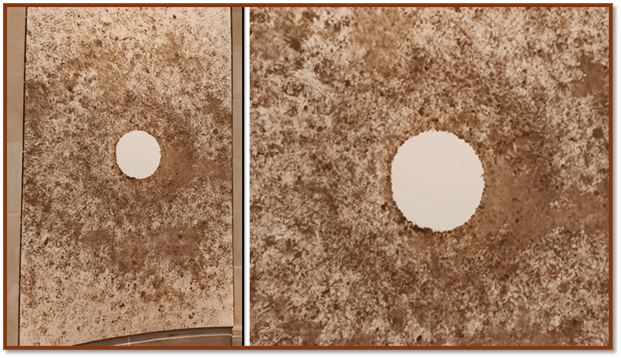 nailed down in a field. A mineral block placed at the centre. The sheep feed off the block, bringing mud onto the canvas. The number of sheep in the field, how hungry they are, and weather conditions all have a dramatic effect on the outcome of the painting. … After a few days the mineral block is lifted – revealing a circle of white untouched canvas.