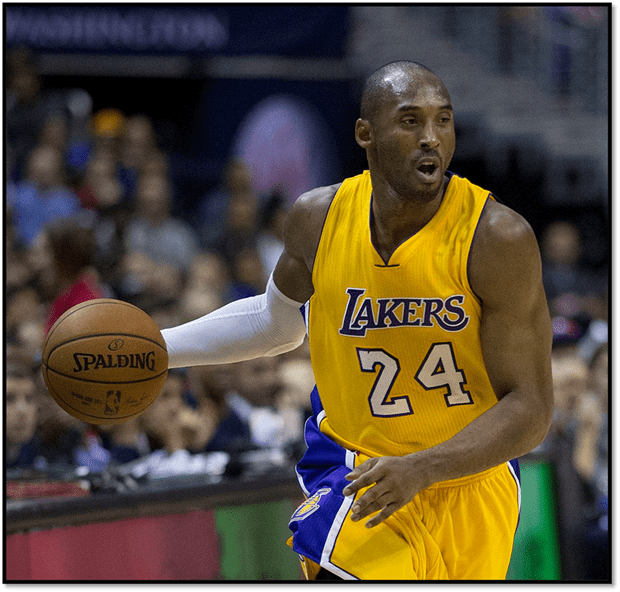 Bryant playing for Lakers at Wizards 12/3/14: Photograph: Keith Allison – Flickr: Kobe Bryant CC BY-SA 2.0