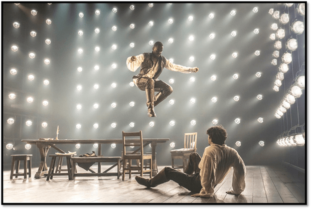 How it was possible to release a photograph of the present production like the one below. I’m glad they did. Seeing Gatwa thus suspended over the body of Bluemel is tantalising and I can’t wait to see where Marlowe lands on Shakespeare: