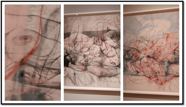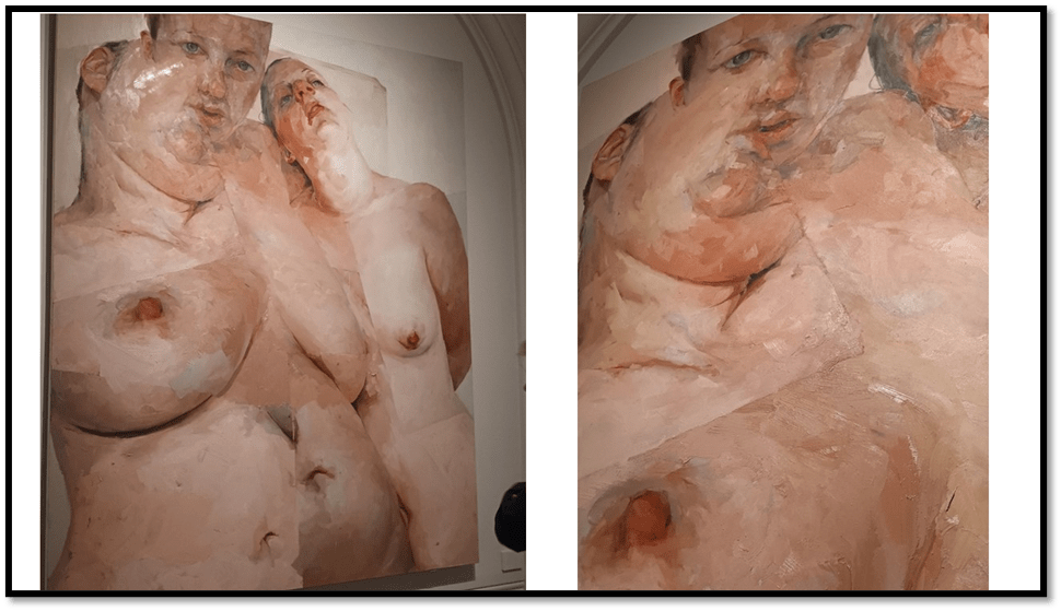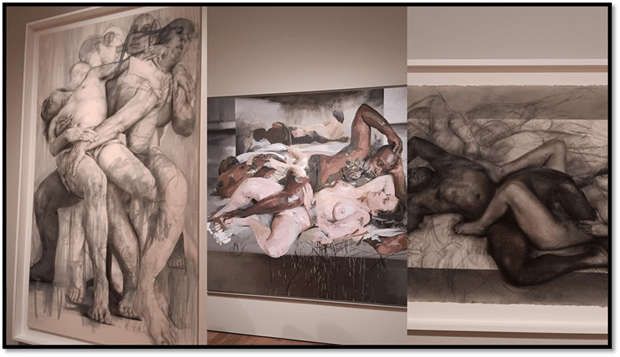 Renaissance sculptural and painted groups also speak from under her work with a sexualised adult content – her interest in the interaction of bodies often being in the way sex markers get as indistinct as gendered ones, so that these great paintings (which I choose not to dig deeply into can neither be called heteronormative nor as concerned about other body marker distinctions like race, class and differing embodiments.