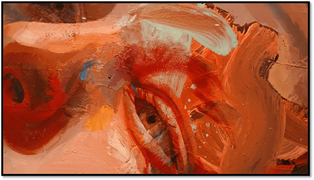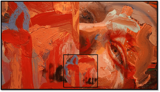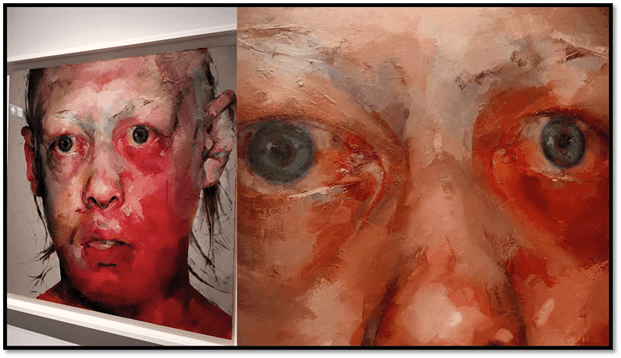 The less the verisimilitude, the more the sense of invention in the markings of paint from the point of view of its abstract design, but the more the sense of an originative violence that calls out empathy and tender feelings for someone whose experience of these ambivalently mixes them up as carriers of human intention towards them, as, of course, in the Red Stare Heads (2007-11).