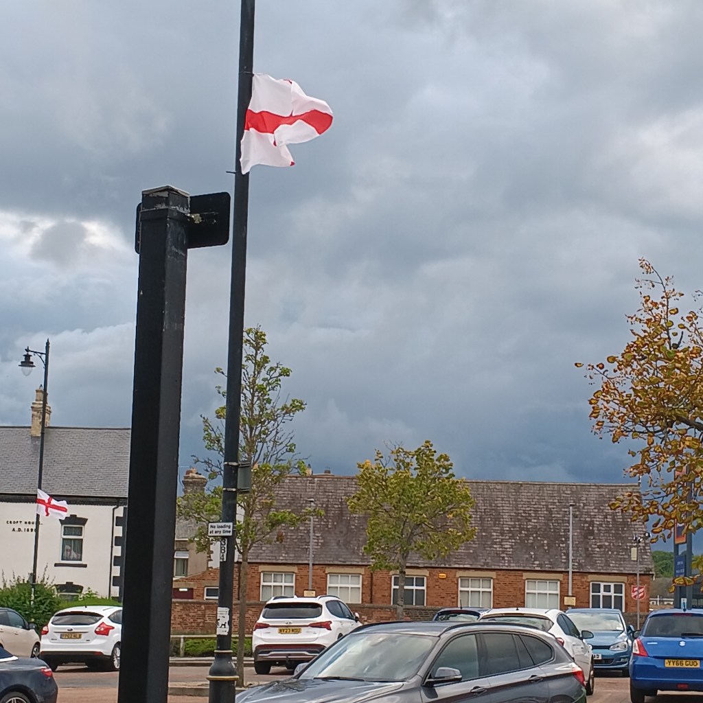 A short film appeared on X, flagship of hatred and nationalism in Elon Musk’s hope, the day on which we woke to find St. George’s Flags attached to every flagpole in the small market town of Crook in County Durham. The film toured the ring roads and town centre whee the flags are accompanied by music asserting English superiority as proven in imperial war.