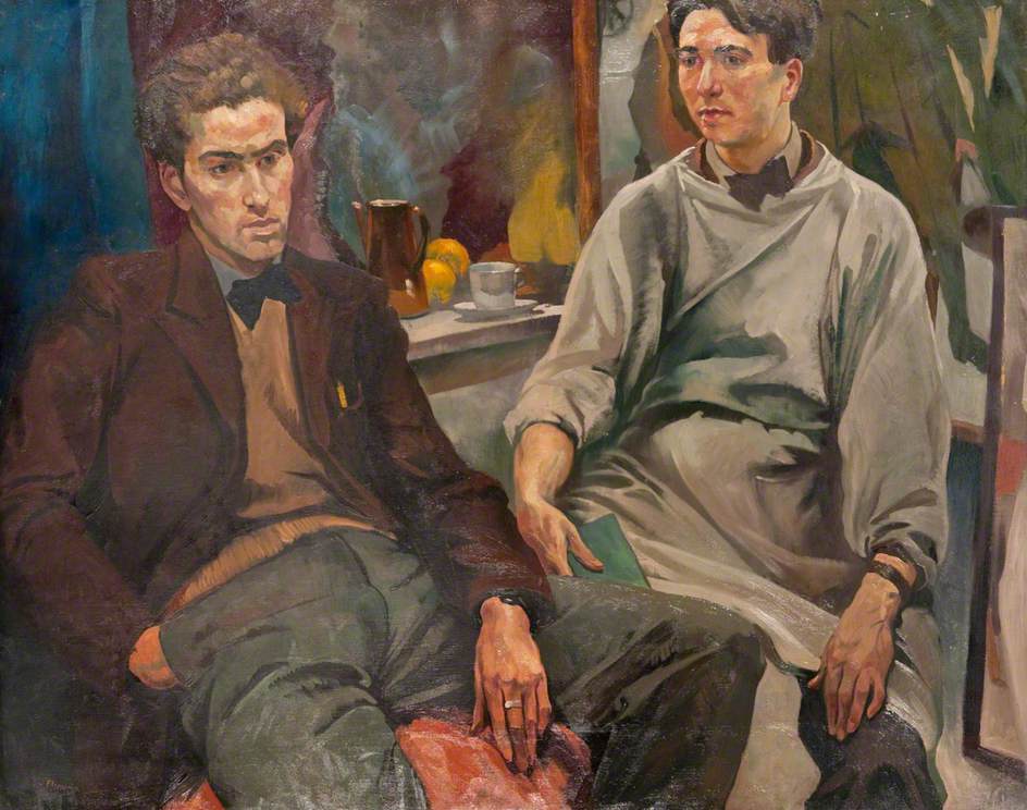 At the end of the novel, when the lads’ art tutor, Ian Fleming, and the painter of the most famous portrait of the duo, is consulted after their death he says that they were not ‘homosexual’ in Scotland, though we know from his coded comments in the novel that Barr felt that Fleming knew but would not in public acknowledge the nature of their association. It is a knowledge that speaks out to queer men even in the coded nuance of the portrait, where the young men ‘nearly’ touch each other but not quite and whose facial expression and body language negotiate.mutual desire very differently.