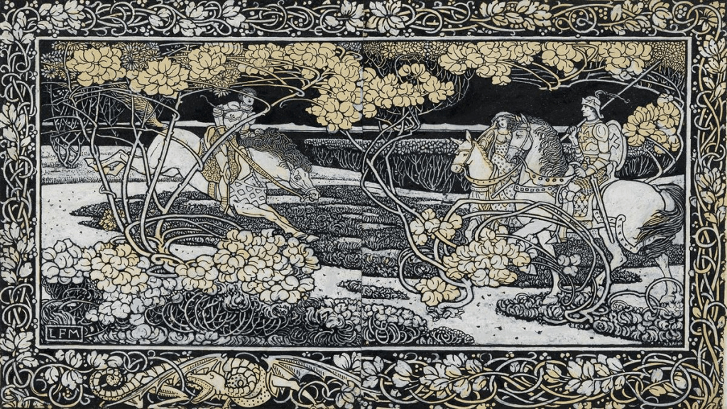 And this is a type of image that Browning resets, I believe with only my feelings to guide me, at the end of his poem, as his Roland realises he has played the same game as all his past peers, who have all now come to view the ‘last of him’, a lasting end they didn’t achieve himself because he only blows his horn and starts the poem again, its title also its last line, and thus its first: ‘Yet natheless it could not doe him die’.