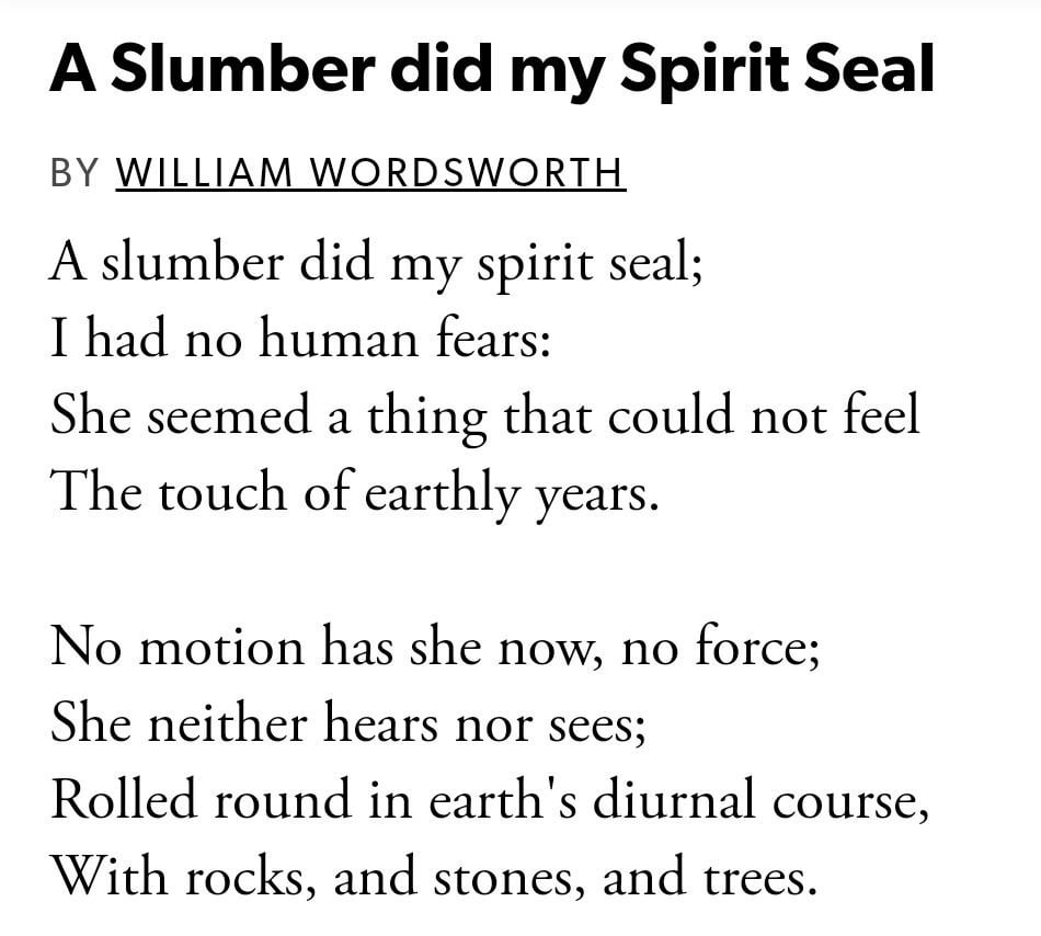And that bit there that is in scare quotes. It is a misquotation from the poet Wordsworth on the nature of deatj in eternity not the tradesman Wordsworth in the earlier reference: