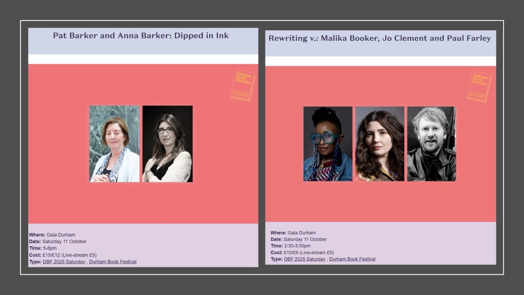 If only you could have been there. I glowed with pleasure in the end at how wonderful Pat Barker was in her eighties. It almost wiped away my memory of having to pass through a fascist rally – in Crook of all places -on my way to the events.