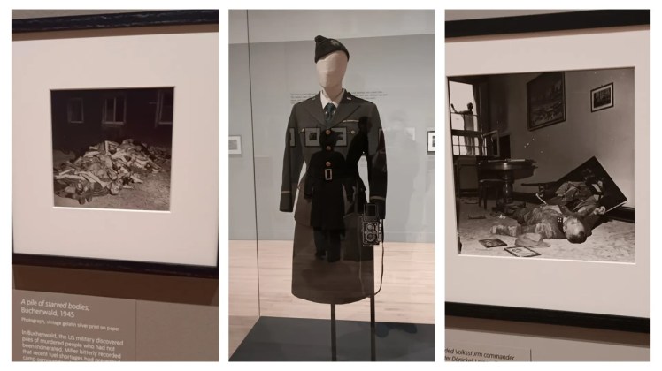 And in the middle of a room with such images is a figure – a tailor’s figure – dressed as Miller as war reporter. I have flanked her by her pictures of, respectively: