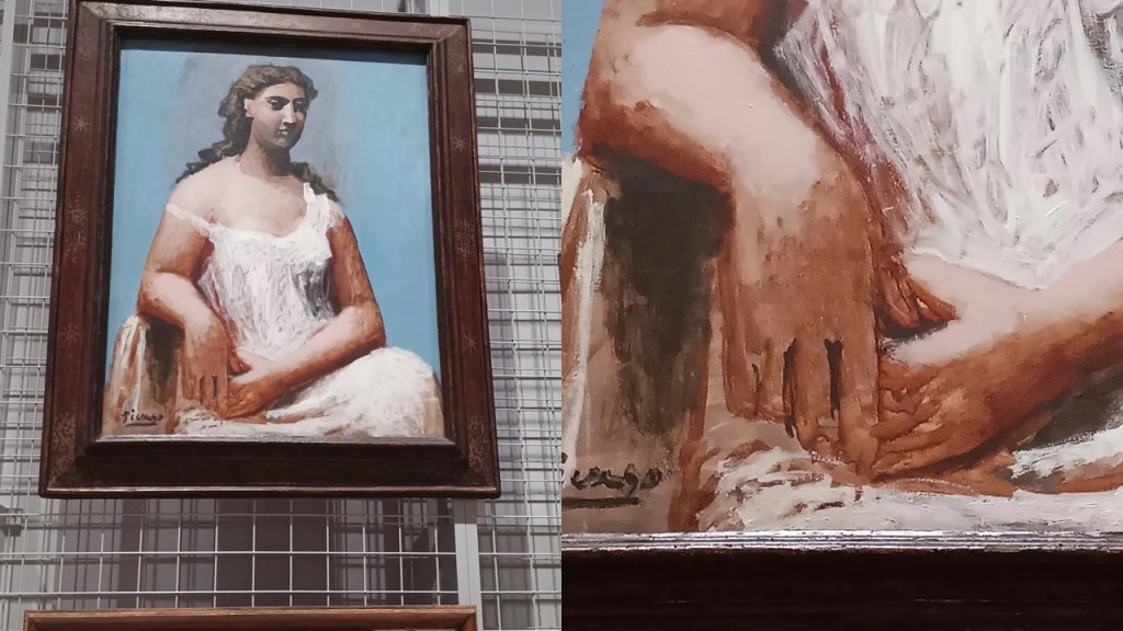 Seen thus every ‘style’ in which Picasso chose to mount performative art, however different their technique, method and rationale, always used those large hands of the maker that serve often to gender-queer the subject of the painting. Take the one below in his ‘classical ‘ style.