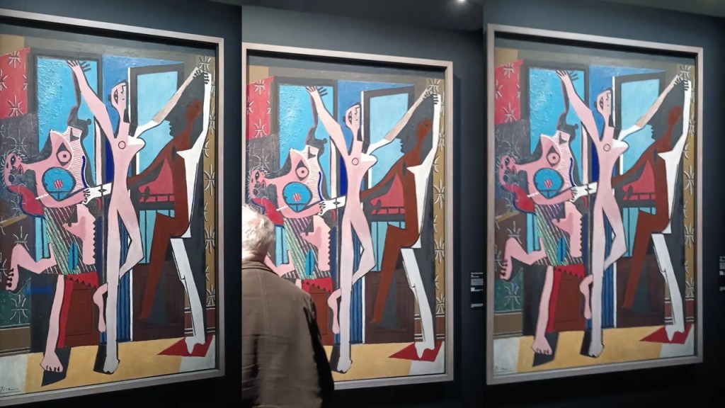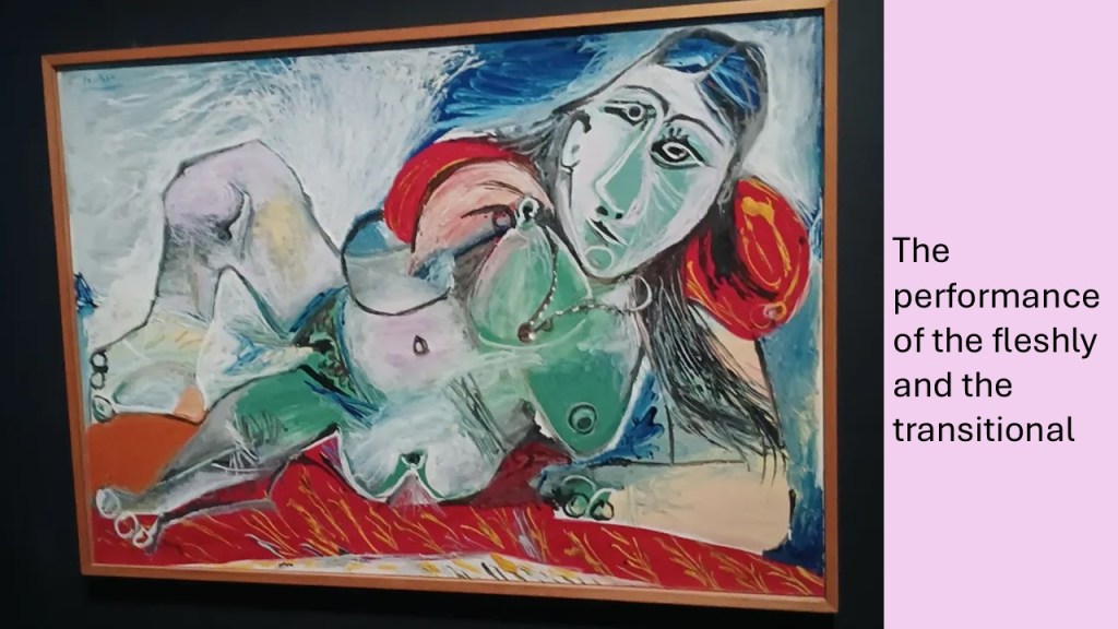 But of course The Three Dancers remains the performance that stars in the show, in which dynamism and flow are made more apparent by the eyes working their effects of sensing its basic shapes by constant movement, that gets transferred to the figures, set as they are against inner frames which they escape too. But putting it on a literal fake stage helped not a bit in helping us understand how painters become performative in their making.