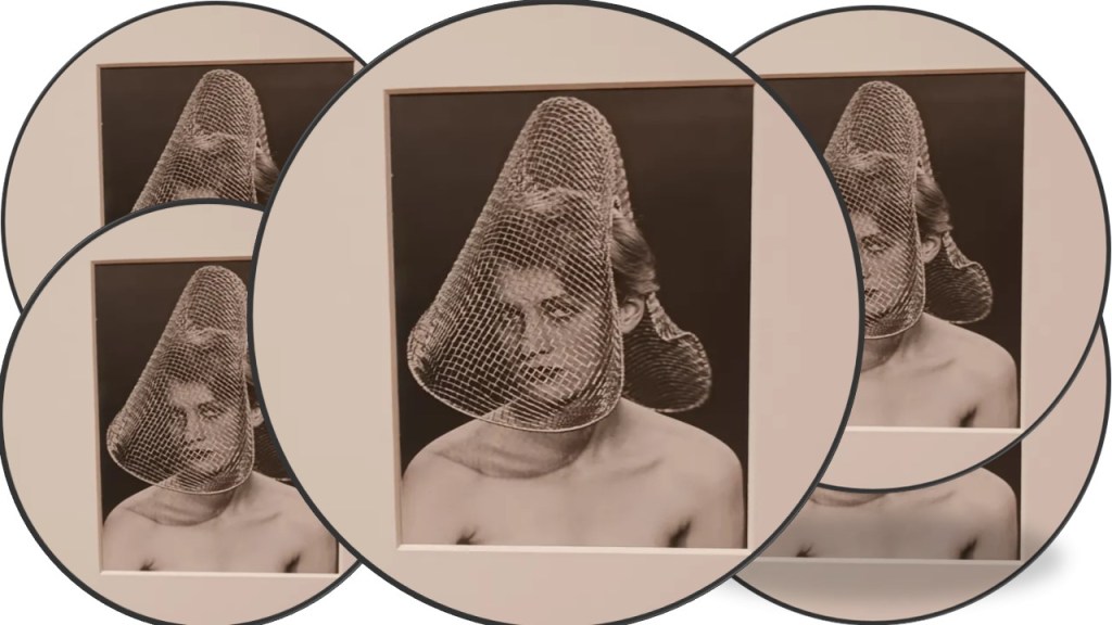 When Miller becomes not only the object and subject of her art because she is also its maker; her surrealism has a kind of strongly feminist angle that is not only theoretical, as it sometimes seems with Ray. Below Miller shoots herself – yes as a part of the whole woman, but so reconfigured by being matched with that favoured object of hers, a fence-guard, that the whole picture acquires meanings that nuance the notion of the feminine by offering very complicated interpretations of its match with the beauty of her face – beauty with defensiveness, perhaps even ‘on guard’ offensiveness.