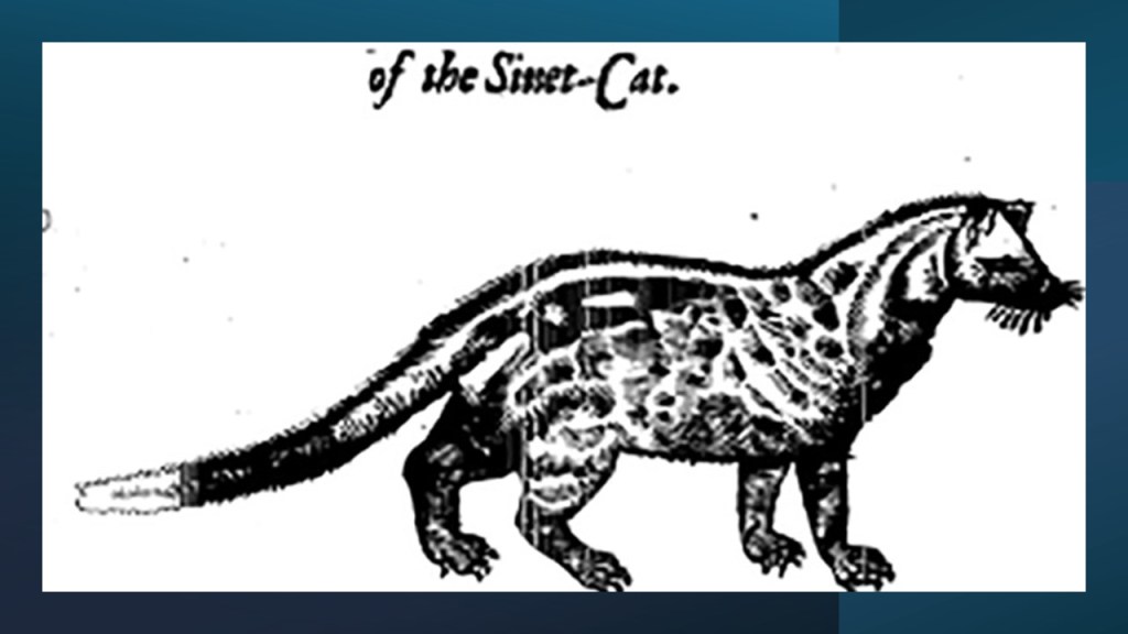 And then go back to Shakespeare’s mercantile metaphors in his verbs applied to human relation to animals language: ‘Thou ow’st the worm no silk, the beast no hide, the sheep no wool, the cat no perfume’. Such a metaphor works precisely because we know humans believe that they ‘owe’ nothing (or are in debt to) animals at all. We take the animal product, oft along with the life of the animal – especially the unseen civet cat, in order to hide the disgusting body odours of Elizabethan human bodies, under their over-superfluous clothing – which are again the commodified lives of animals. This is as radical as even J.M. Coetzee or the anti-vivisectionist Lewis Carroll get on this theme (see my blog here).