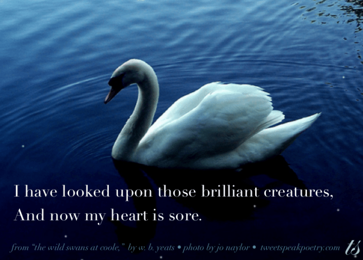 This is remarkable even down to the sex-gendering of the body of the swan; both because it remembers being Esther’s body, and because it can only see its kind capture by Agnes as a repeat of the vicious one of Samuel Pollard that brought about her marred grammar. And she cannot be merely wild – never an it or they – but some subject aiming to understand its wildness in the context of being tamed – by human language, as well as human views of what it is to feel contradiction rather than panic. To be free can be good as well as terrible, and vice-versa with being trapped. For the best things in lives humans imagine, if not swans, through their language that seem to free our spirit also trap – like marriage, perhaps even being in love with anyone but a shape-shifter. and don’t the nets of language trap us, even though they can also, at the same time, give us the keys to freedom (both good and terrible too at the same time. We never get the ‘wild swan’! Being aware of this offers a way even to reading Yeats’ The Wild Swans at Coole, for the perceiving man’s decline into the prison of his body somehow catches the swans in their attempt to be free, never lifting off as they did in the lyric voice’s memory.
