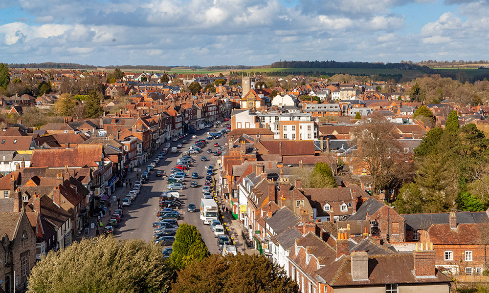 Marlborough, Wiltshire, before the Inundation: In the novel, Marlborough has become a thriving port serving the Vale of Oxford Sea named Port Marlborough