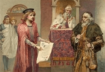 Portia, a woman disguised as a man would then be (and actually on the Elizabethan stage a boy enacting a woman enacting a man, then is urging on Shylock to show or ‘give’ (for as I understand it the Torah always speaks of ‘giving’ (an active verb indeed) rather than ‘showing’ mercy, as in English translations, that which is the most androgynous of the emotions of God.