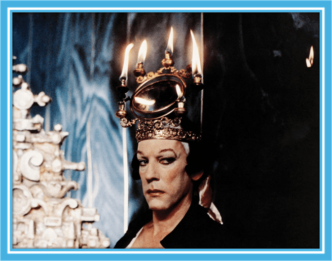 Whereas Fellini and Dano relate to each as masters of the manipulation of material into looking grander than itself, and then displaying its existential poverty in its performance – the way in which, for instance, Nicolas learns that Fellini had deliberately manipulated Donal Sutherland, as he does Dani, to show that we are all – a libertine like Casanova as mere exemplum – persons who have ‘no idea who they are, who is living inside the wrapper of a dream’[12] Felli, and Dani under his influence, is all about turning life into art, via means of artifice. Nicholas watches Dani to see how the latter ‘converts the real city they are travelling through into scenes from a story’, making ‘a pantomime city with its impossible architecture’ that yet exerts ‘a powerful pull on the imagination’, making the ‘greatest luxury with the trashiest, most impoverished resources he can find, the Arte Povera of the cinema’. [13] Some idea of these flashy effects can be seen in the dressing of Sutherland as Casanova below, adorned with mirrors and light, a face pulled by the caked make-up on it into full artifice and a necessity for the actor not to act so weighed down is he by artefacts of artifice: