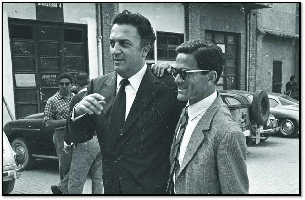 Federico Fellini (left) with Pier Paolo Pasolini in Rome, 1961. Photo Archivio Cicconi via Getty available at: https://www.artnews.com/art-in-america/aia-reviews/olivia-laings-silver-book-pasolini-fellini-1234759609/