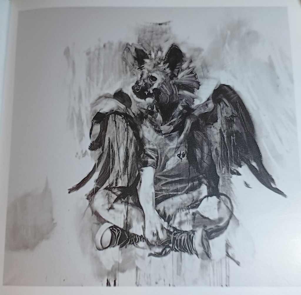Detail from B&W photograph of Anthony Micallef Animal boy (Oil on linen ) 140 cm x 140 cm Lazarides catalogue of show in Sept – October 2009, p.17.