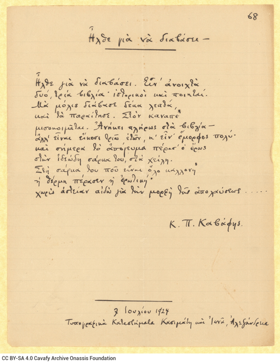 But, as Jusdanis and Jeffreys acknowledge, “this is one of the paradoxes of the Cavafy phenomenon: one of the most celebrated poets of the twentieth century, the most frequently translated Greek poet into English, has had few biographies,” most likely because of a “lack of interest” on the part of would-be chroniclers deterred by “the predictability…of the poet’s life itself.”