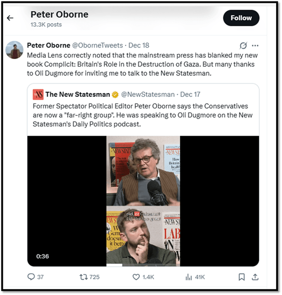 [1] Cited Peter Oborne (2025: 201ff.) Complicit: Britain’s Role in the Destruction of Gaza New York & London, OR Books