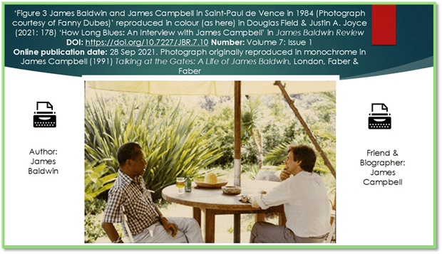 [6] Douglas Field & Justin A. Joyce (2021:167 & 169) ‘How Long Blues: An Interview with James Campbell’ in James Baldwin Review DOI: https://doi.org/10.7227/JBR.7.10 Number: Volume 7: Issue 1, 167 – 183
