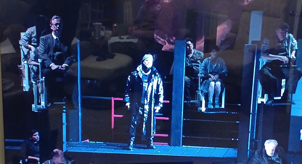 This is certainly the view of those who see him as vulnerable and a ‘victim’, the common stereotype of the misunderstood and oppressed ‘homosexual’ in the 1950s, at least for those who had empathy for outcasts. My own reading of the latter arioso (a heightened recitative but short of an aria) pieces is that they illustrate hopeless attempts of some kind of loner forced to understand themselves without a model that might interpret them to themselves or others. Only such models can help loners to find their appropriate level and role in a community they can not respect. They can not respect it because hoi polloi see the world as without complications, whilst they see the complications without understanding or being able to read them. This is more the feel in the version I did see (on DVD), David Pountney’s production for the Opernhaus Zurich with Christopher Ventris as Grimes.Here Grimes stands alone and aloof raised above the mass of people at the Boar Inn on the stage, who ae stilled in awe or fear, and distinct from the raised individuals each at their work in their own cells of activity, mainly alone in their homes or workshops. He wears still his sealskin protective coat from fishing and woolen hat, singing as it were to himself. The final stanza of course finds a change in the music where the bewilderment, implied by the sight of an imagined herring shoal, Grimes feels is both in the music and, in this production, acted out as Grimes falls into a kind of frenzy.