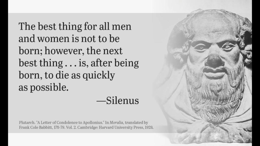 It’s a generalised feeling and it in part restates what Nietschze called ‘the Wisdom of Silenus’: