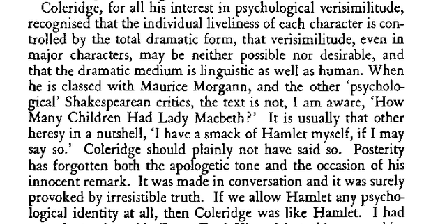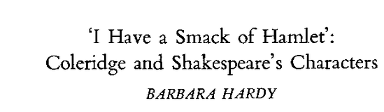 For a long time, literary critics have insisted that to see elements of the biographical in the charismatic figures that are the leading energy of dramatic plays, especially, those by Shakespeare is a’big mistake’. Many, however, have al;so felt that an exception might be made with the character of Prince Hamlet in the eponymous play. Here, for instance, is a stern critic, Barbara Hardy, from 1958, excusing Coleridge for a thoughtless identification with the dark prince.