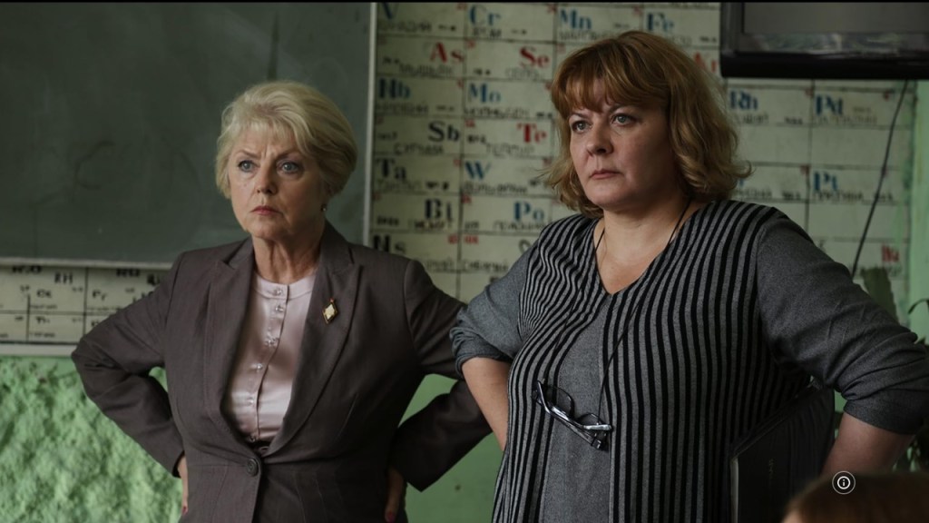 The funniest element of the school are its Principal and its History teacher (in the still above) who variously struggle to show that they have any belief in that which they profess to teach, and whom do not seem to be able to learn but who nevertheless find solace in the status quo, and the pictures of Putin so oft behind them..