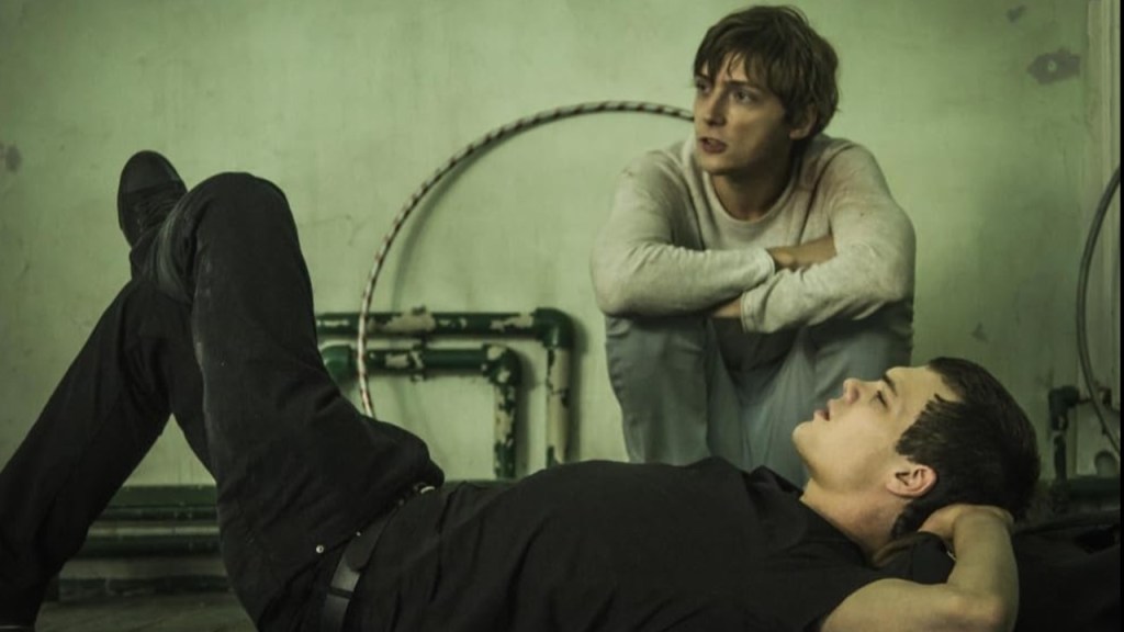 The ‘liberally inclined science teacher’ (Viktoriya Isakova as Elena Krasnova in the still above) is by no means a centre of appropriate ways of thinking in the film any more than the vapid supposedly centrist thinkers that run the school or Venjamin himself. Both the teacher and Venjamin (Veniamin Yuzhin, nicknamed Vĕnia) drive particularised thought patterned to extremes, generalising them over all experience. She herself becomes obsessed with Veniamin’s rationale for opposing her, trying to rationalise, often in none-too rationale ways – notably by reading the Bible as obsessively as he does – in order to explain its attractiveness to her student. Her best reading of the mission of Christ is that he is a symbol of male romantic bonding and queer community, as a justification of her mission to teach diversity tolerant sex education, and a sufficient reason for Veniamin’s passion for the Christian message.