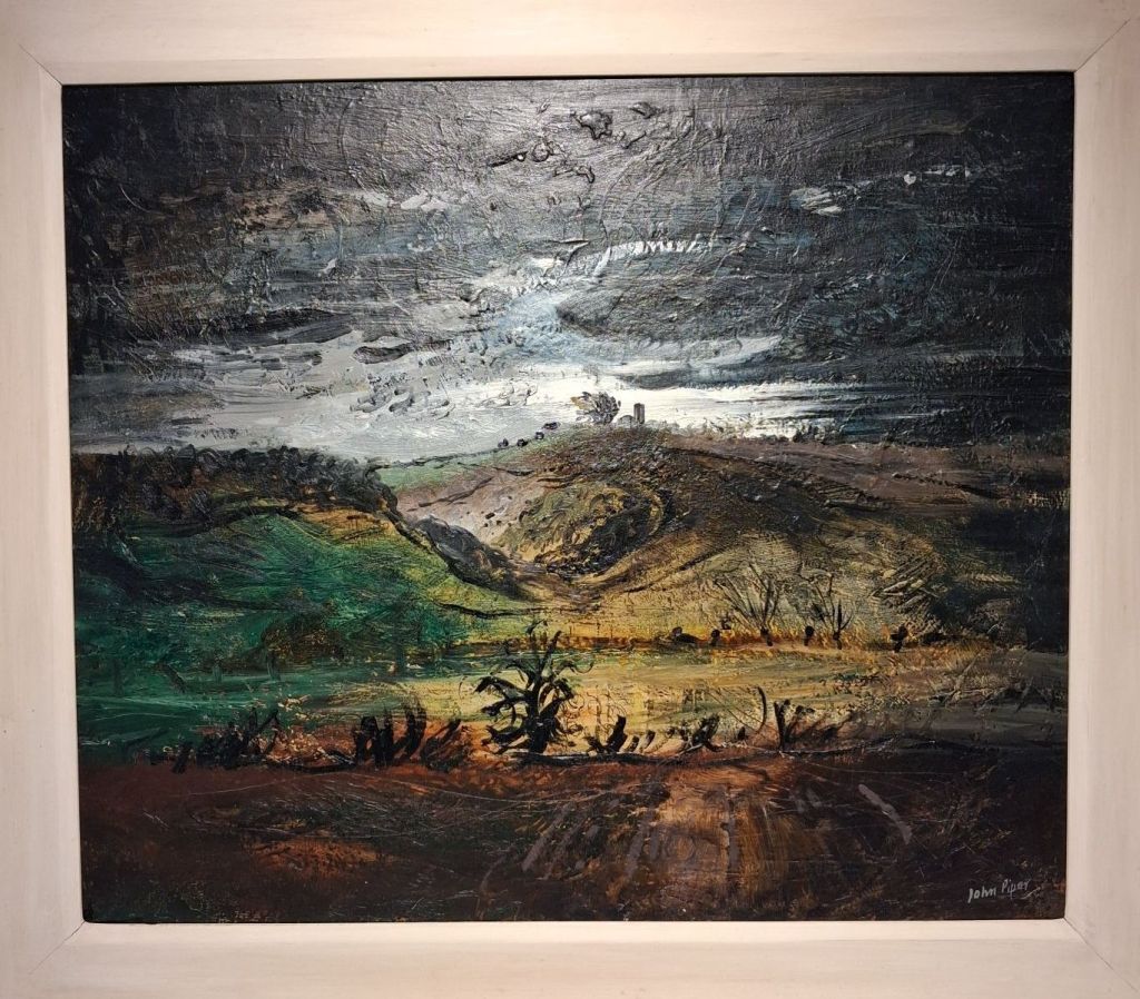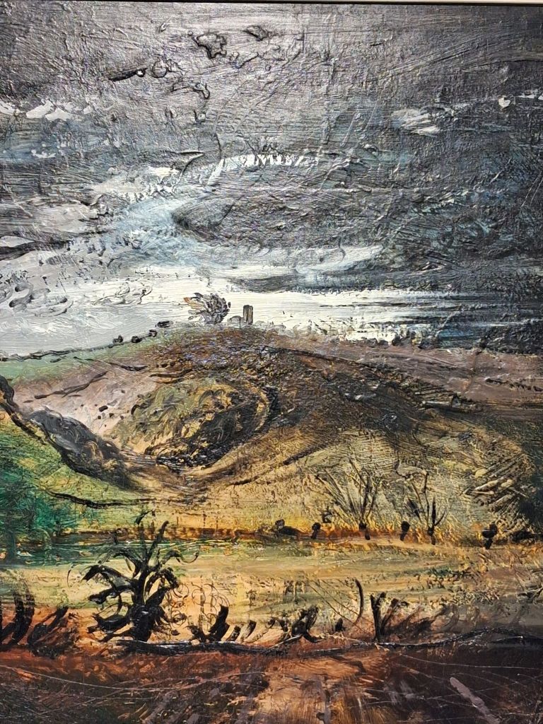 The impasto in the oil is used to build almost three dimensional volume in the manner of Vaughan oils and, possibly its primary user in the group, Graham Sutherland. It’s perhaps clearer in the detail below where a storm cloud is given wet density.