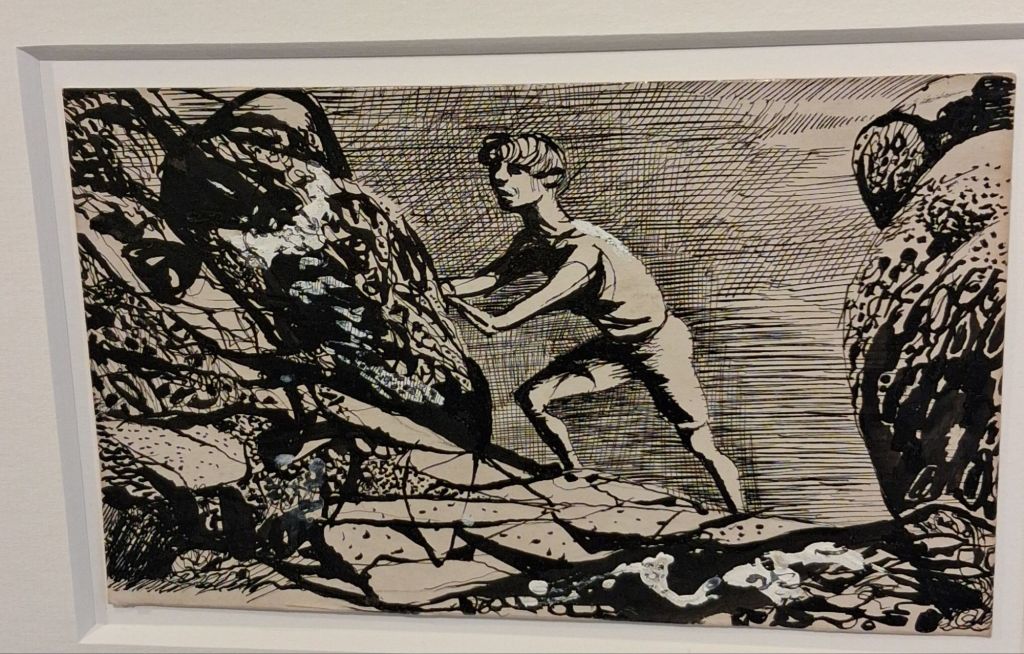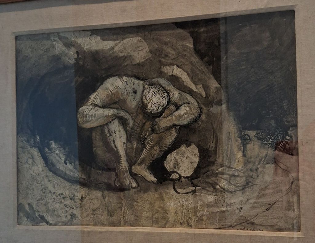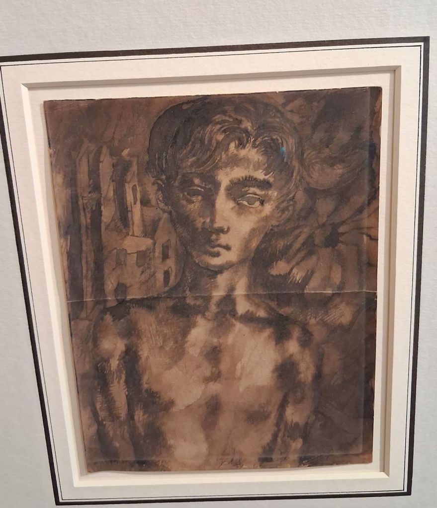 But the drawings and studies in Brooke-Walder show also show that Neo-Romanticism.had keen social concern. It stretches the Neo-Romantic label to put this drawing from Colqhoun in there, but it was a privilege to see it’s near Wyndham Lewis concern with modern types in contrast;