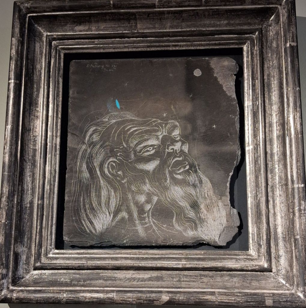 They are nearer to the tortured old man of Ayrton’s vision of himself, perhaps as Daedalus, available in this exhibition, and wtching on slate: