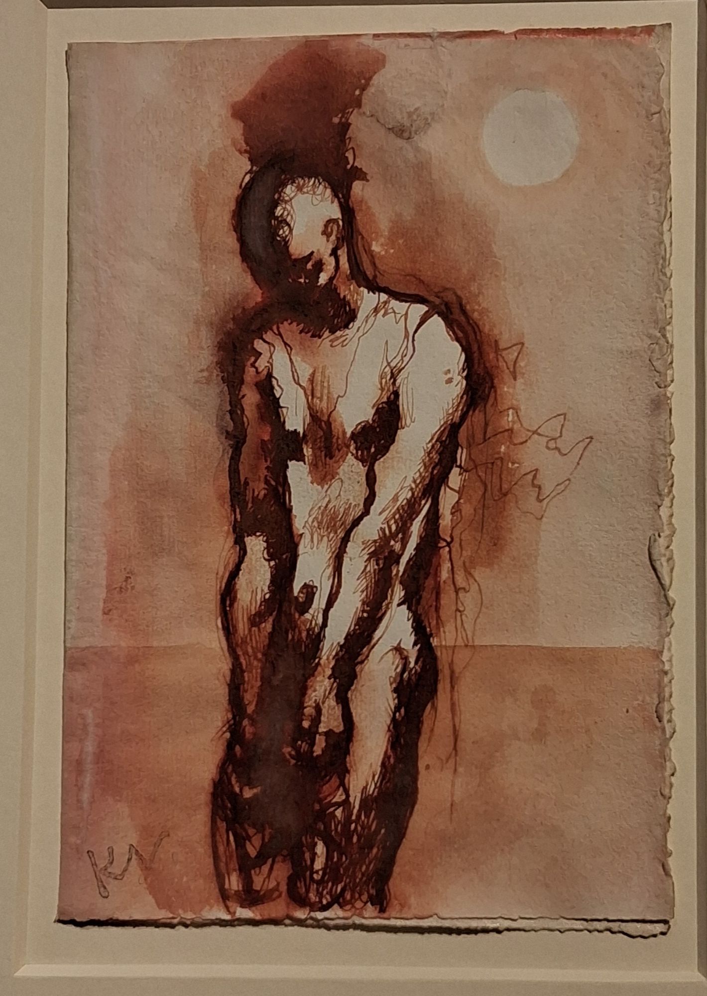 But the tension is rarely so isolating, as in the assemblies of only two figures. Even in the early ones there is tension between the figures and within each, existing in spaces that aren’t bridged, gesturally shown in clenched hands. Naked and exposed these men don’t look directly at each other.