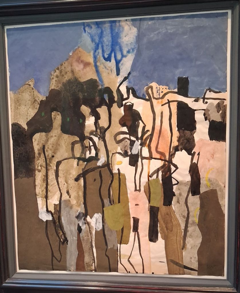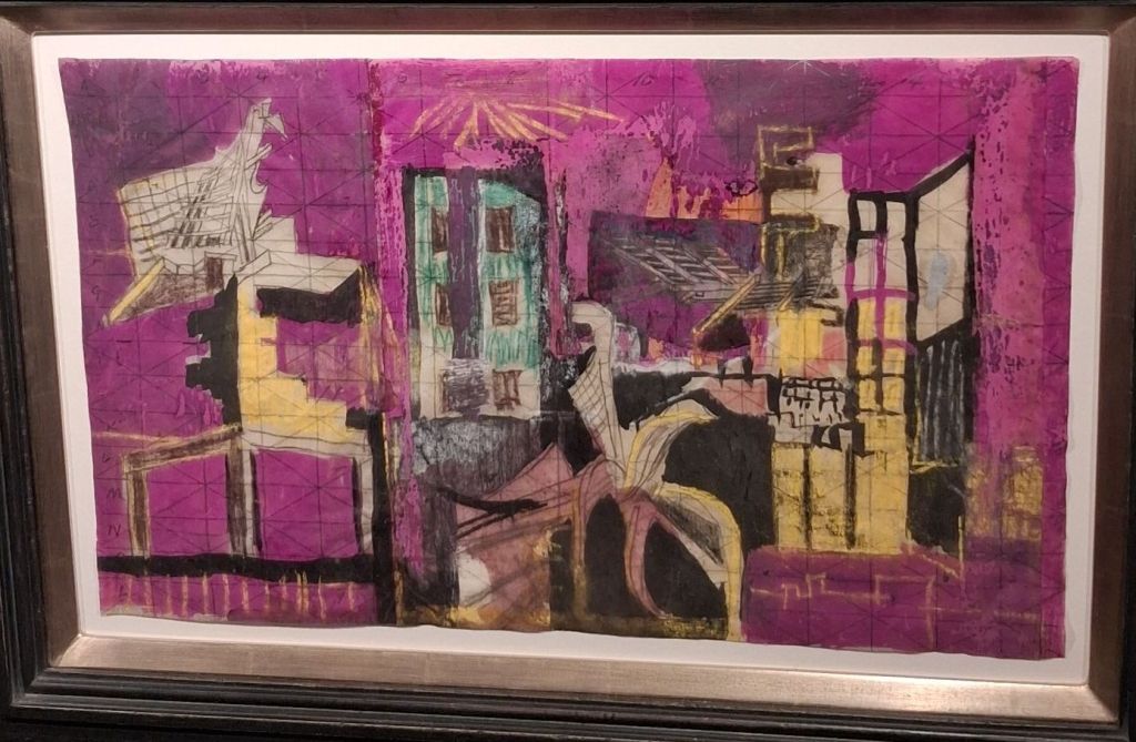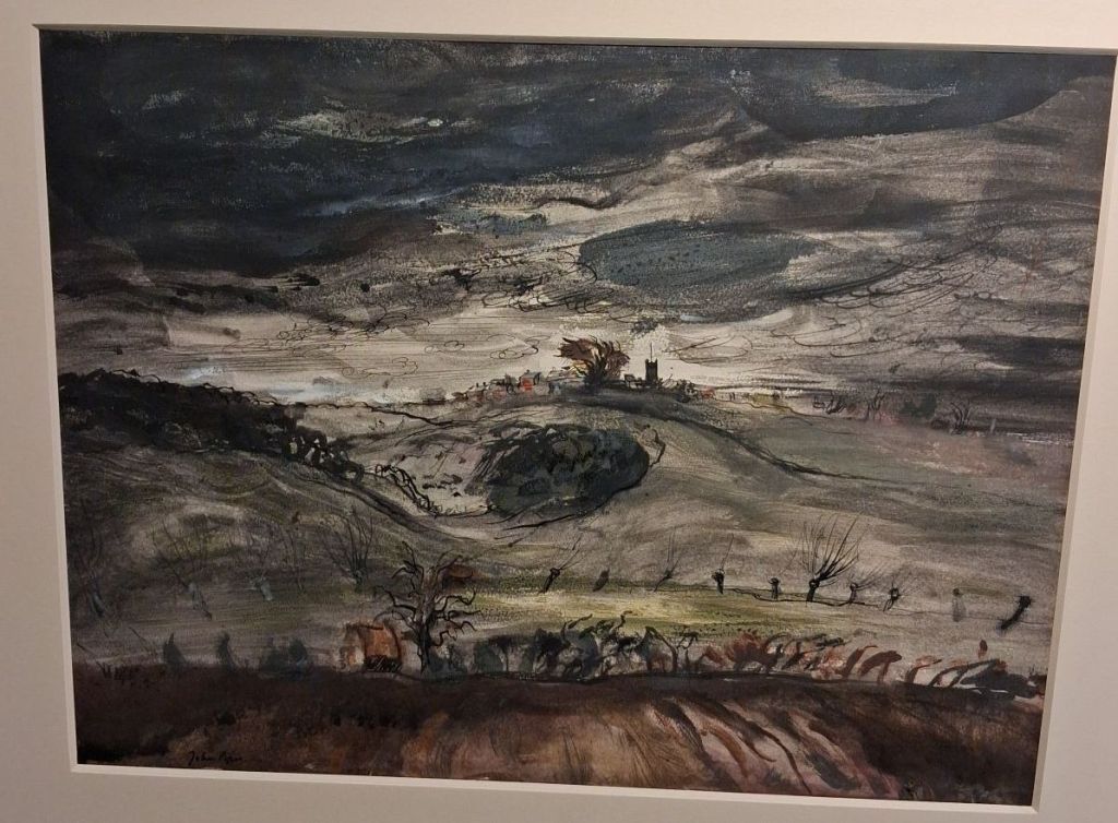 Yet having mounted that part of my blog here, I have reached Euston Station stop on the bus. But let’s begin with the Brooke-Walder exhibition; a delight and a surprise, largely stocked with Keith Vaughan pieces but with surprises from Minton, and to my biggest surprise a John Piper that almost made me eat my word “vapid” used of him in the last piece. Here is the painting and drawn study: