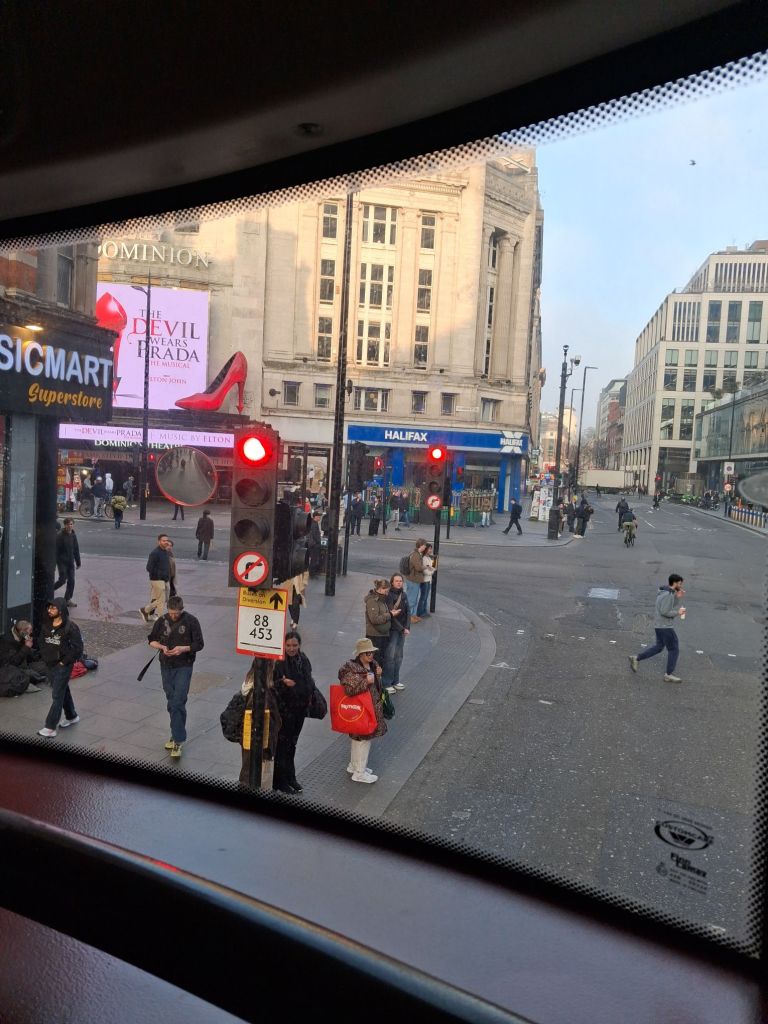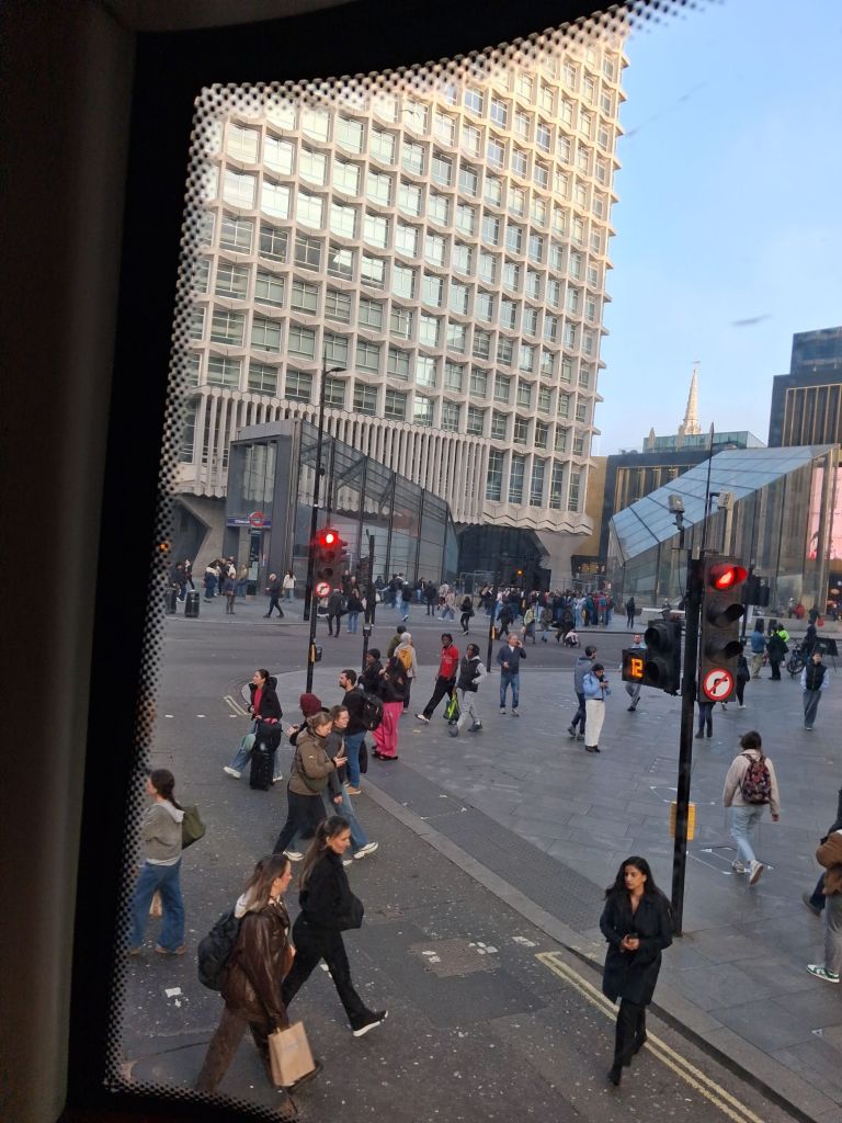 I blogged on this trip yesterday. Today, my main objective is fulfilled and I am starting this on the 390 bus towards King’s Cross and my hotel. Here, is the start point of my writing after the whole of Oxford Street fron John Lewis store. It is Centrepoint between Oxford Street, Charing Cross Road and Tottenham Court Road.