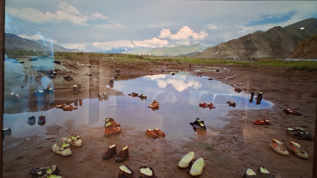 One past installation from the artist’s oeuvre exists now only as a photograph in which discarded shoes in transit are as full of memories in the form of cloud-like fabric stuffing as the sky of actual ones. Desire and disappointment and enormous losses and are encountered many times in many forms in human transit through spaces and times. I found that piece very moving.